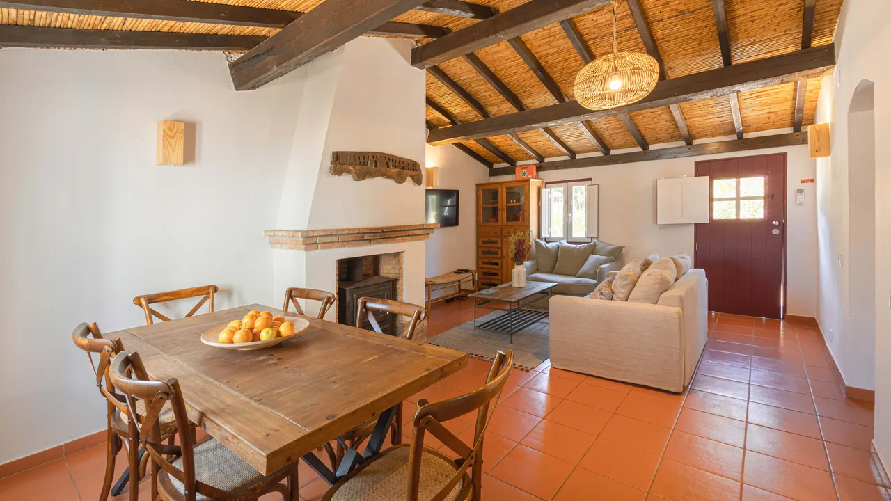The 3 bedroom apartment is located in the main house and has an independent access. It is the ideal space for a holiday with family or friends in the serenity of the countryside. It has a suite with double bed and private bathroom with all the necessary comfort to relax. In addition to this area there are two more bedrooms, one of them mezzanine, both with two single beds or the possibility of a double bed and a bathroom shared by the two. Meals can be enjoyed in the furnished outdoor space overlooking the countryside. The kitchenette is equipped with everything needed to prepare meals, such as a hob, fridge, microwave and basic kitchenware. Pets are not allowed in this room type, and bathrobes and slippers are available upon request!